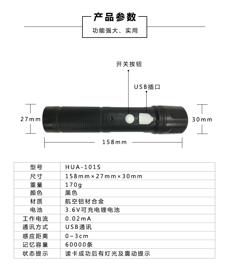 1、防水抗摔:硬制氧機(jī)氧化,航空鋁材鋁合金材質(zhì),防水抗摔,自由跌落可正常讀卡。