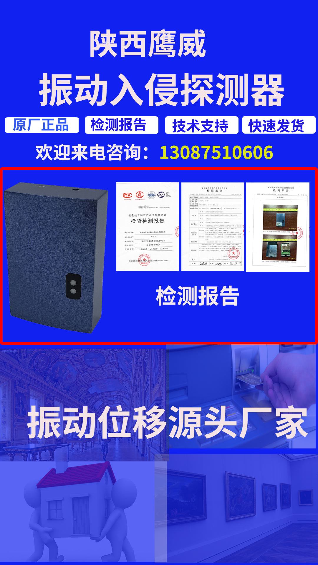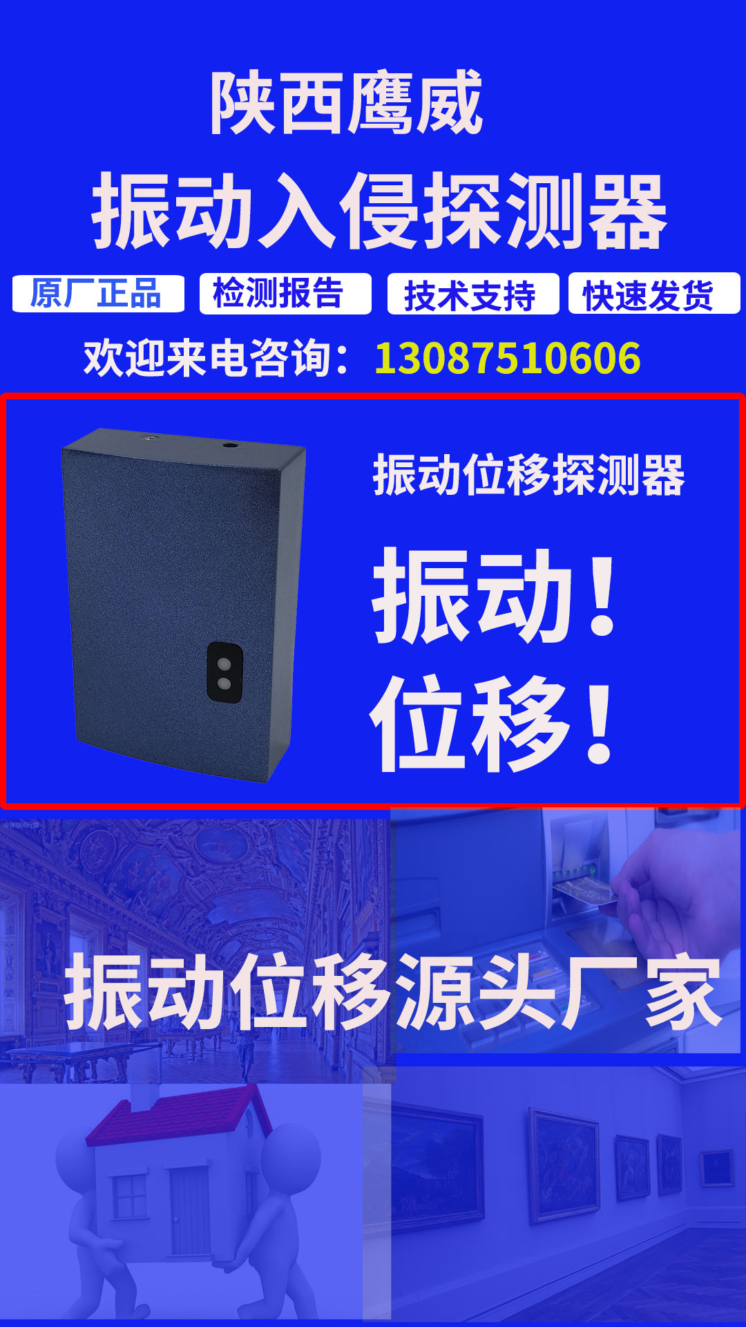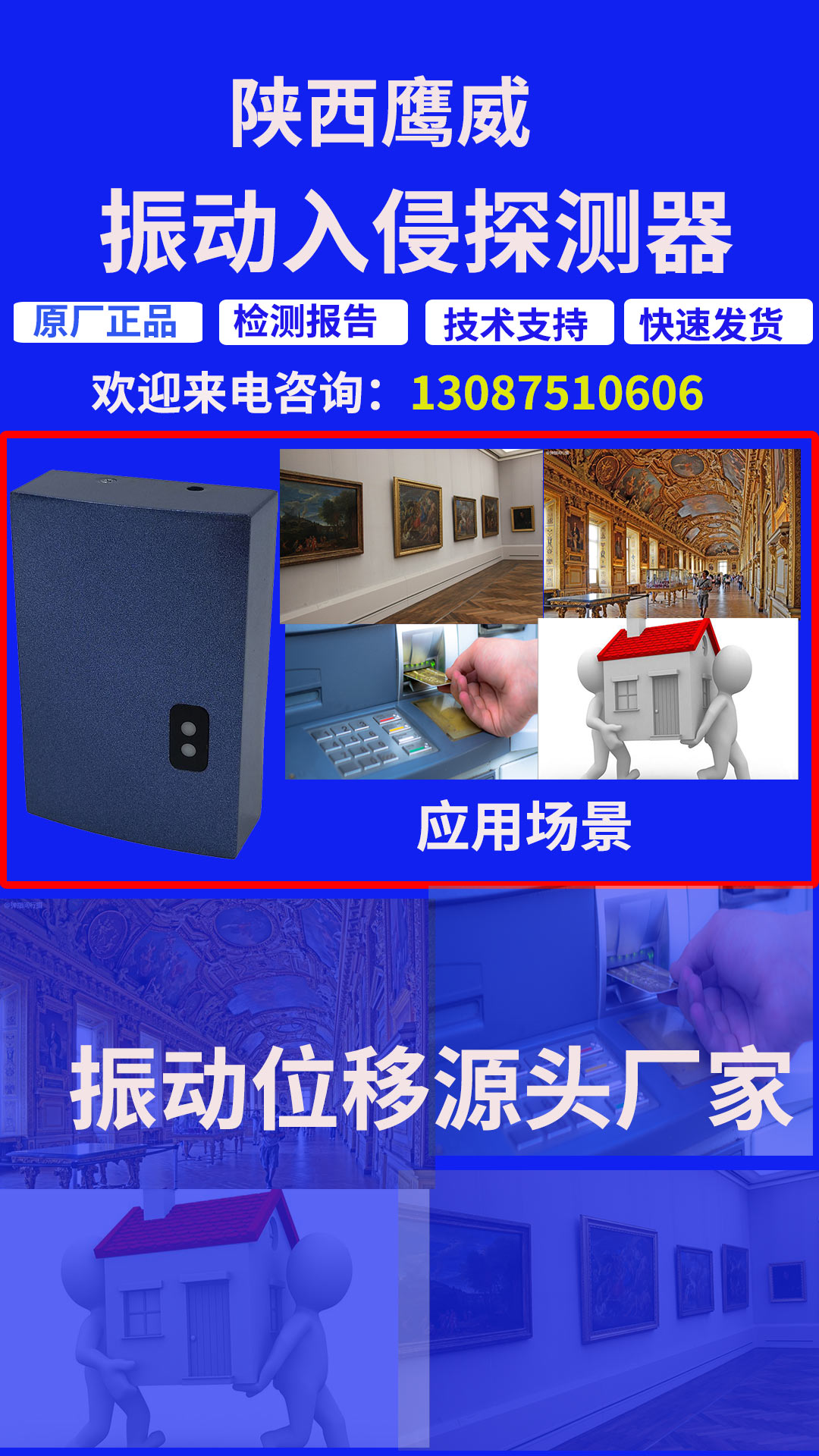 位移振動探測器,位移探測器,振動位移探測器的應用場景有哪些?位移振動探測器,位移探測器,振動位移探測器應用場景博物館、畫廊、展廳展柜、ATM機、槍械庫等應用位移振動探測器的場景。