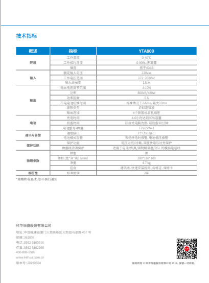 科華精衛(wèi)系列電源 YTA系列后備式UPS (800VA )
